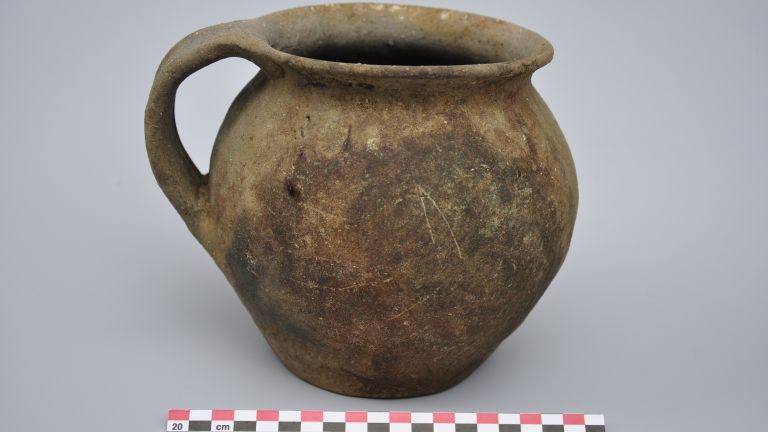 ci contre : Découverte d’un chauffe-plats en céramique dans la coque du grand bateau Photo JSL /Philippe MOYAT